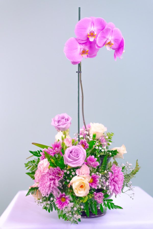 Honra floral con base de copa, orquídea, tocado y base decorada cantidad