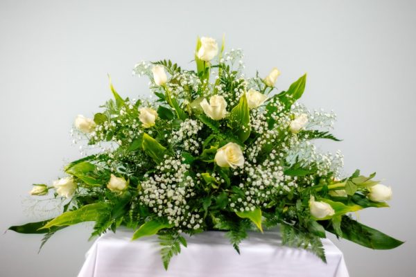 Honra floral con base de copa, orquídea, tocado y base decorada